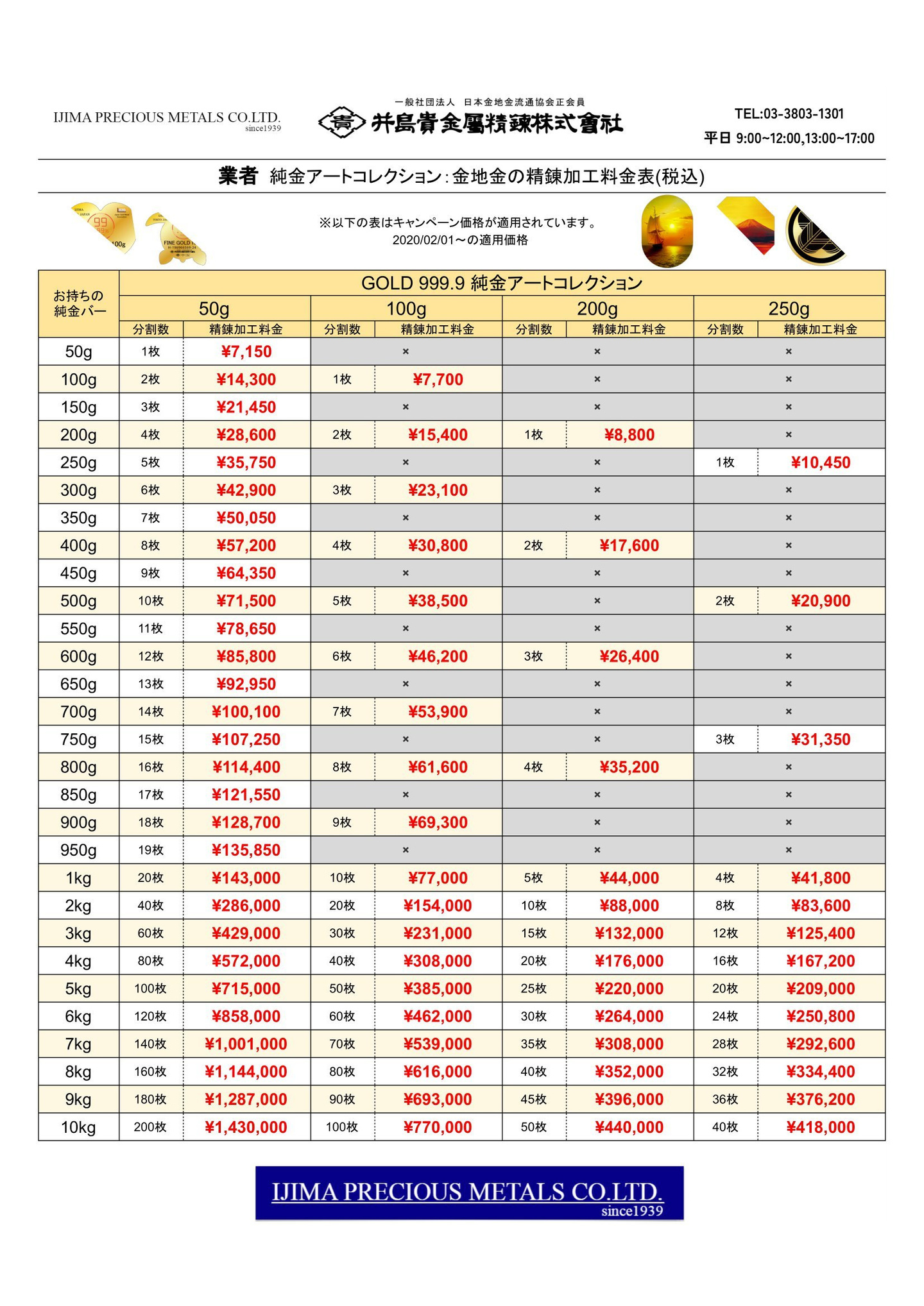 POINT2・・・貴金属特定品加工した井島貴金属のアートコレクションシートはJGMA:日本金地金流通協会の正会員製だから安心!