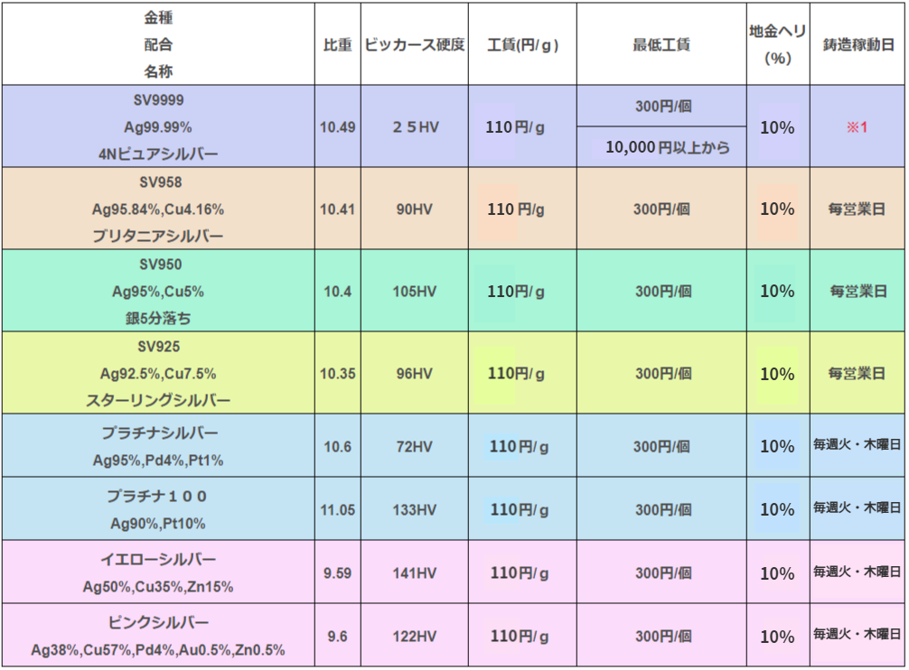 弊社では行っていない「錫」を使用した鋳造も行っておりますので、銀より安く製作したい等のご相談もヨシモト工房様に直接ご依頼頂くと良いかと思います。