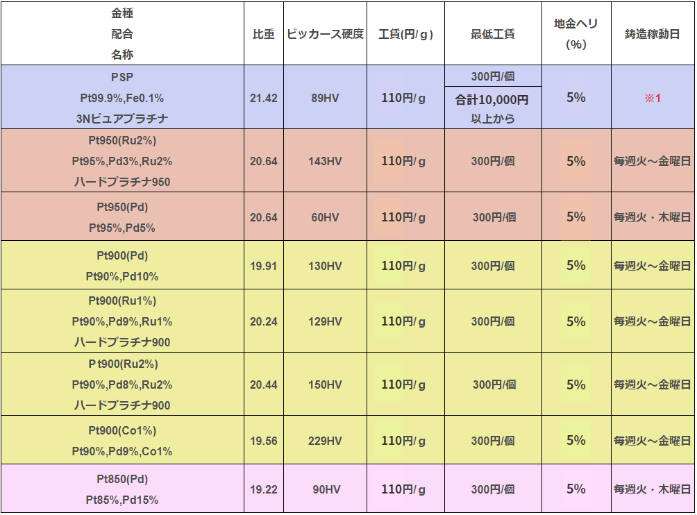 不良による再キャストの場合は「工賃は無料」となります。(地金重量に差異が確認できた際には地金代金のみご請求いたします)