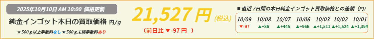 現在貴金属相場が乱高下しており、HPに表記している金額とは異なる可能性がありますため、都度お電話にてお問い合わせいただくようお願いいたします。