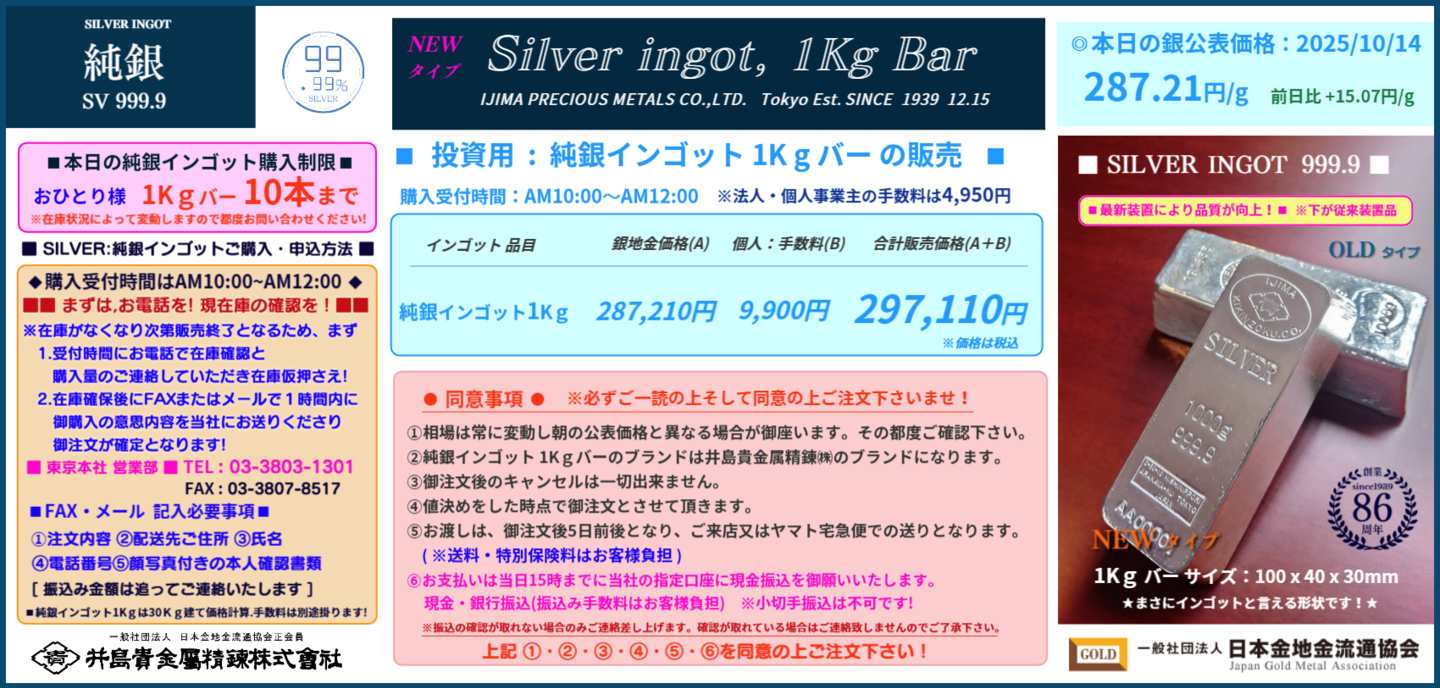 ※また銀地金市場・住友金属鉱山からの仕入れや在庫状況によっては限りが