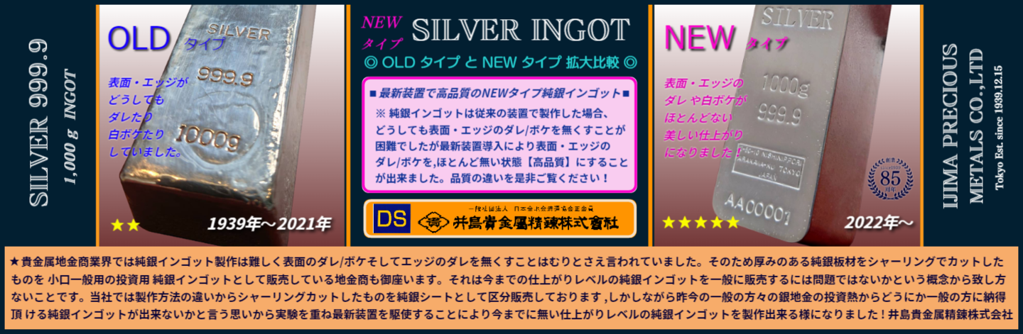◆ NEW SILVER INGOT 999.9 ◆ 純銀インゴット販売:50g・100g・200g・300g・500g・1Kg・2Kg・3Kg・30Kg の 店頭販売 !・通信販売 !