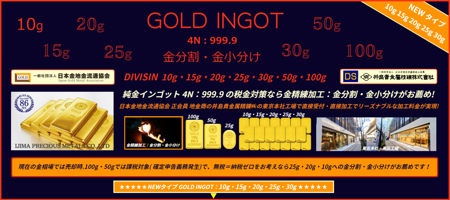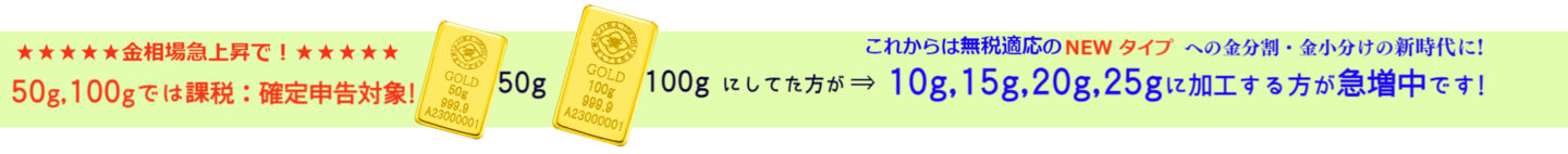 ■NEW ART タイプでは、10g,15g,20g,25g,30gへの分割・小分けはシャッフル加工が出来、また金相場の動向で売却重量をコントロール [納税額ゼロ] にできるのが最大の特徴になります!■