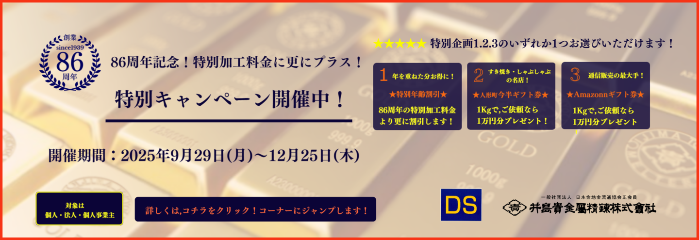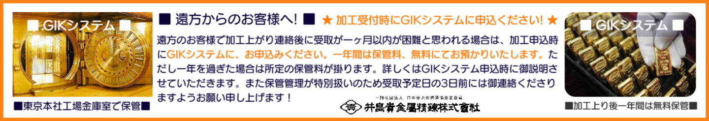 ★貴金属 地金商の井島貴金属精錬株式会社の東京工場で直接受付加工するからこそ加工代金に関して[ 公正で適正な価格 ]を実現できています!★