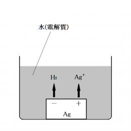 これは欧米で昔から言われる銀を入れた水が腐らないという場合の銀イオンの生成機構である。