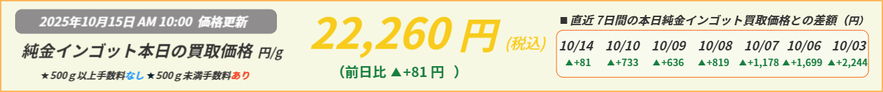 現在貴金属相場が乱高下しており、HPに表記している金額とは異なる可能性がありますため、都度お電話にてお問い合わせいただくようお願いいたします。