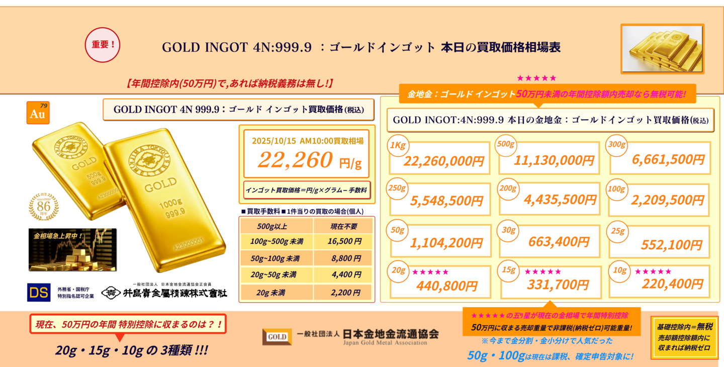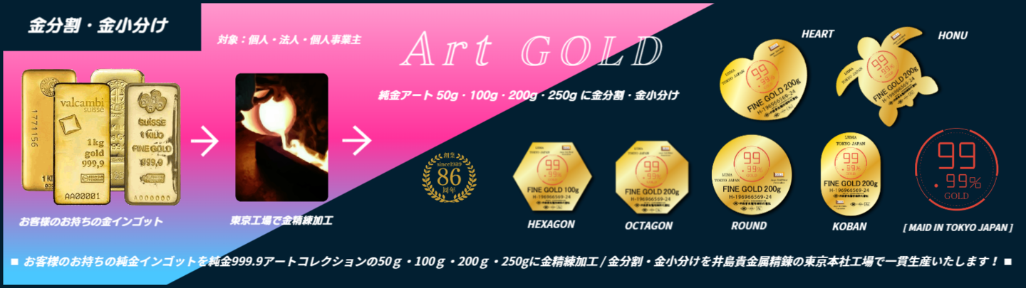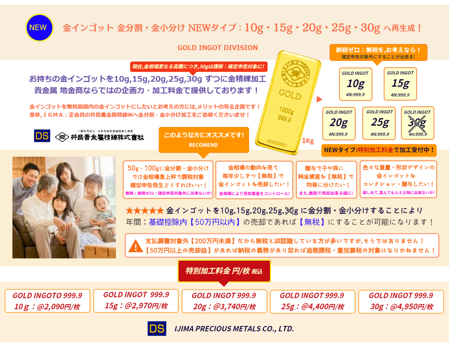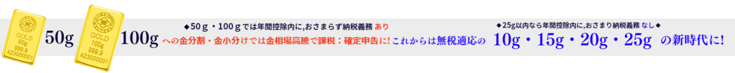 ■NEW ART タイプでは、10g,15g,20g,25g,30gへの分割・小分けはシャッフル加工が出来、また金相場の動向で売却重量をコントロール [納税額ゼロ] にできるのが最大の特徴になります!■