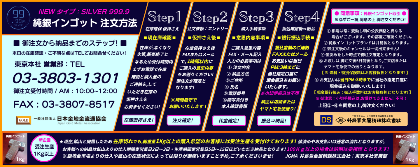 純銀インゴット注文方法:詳しくはこちらをクリックしてください!
