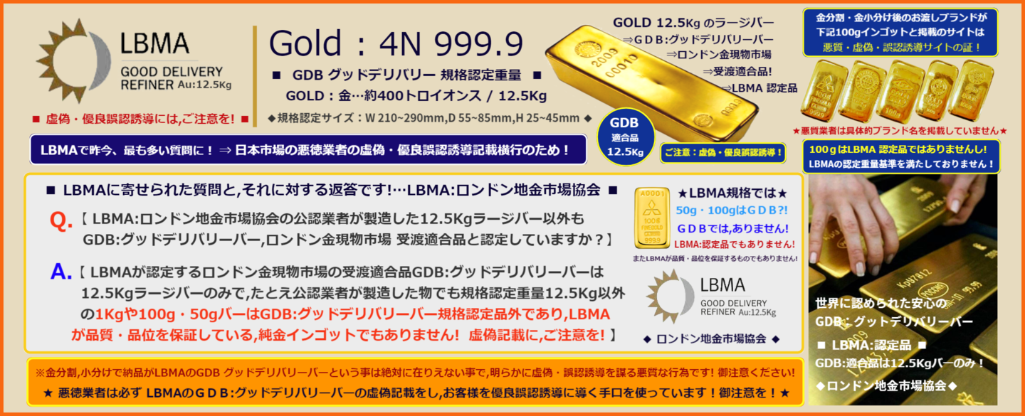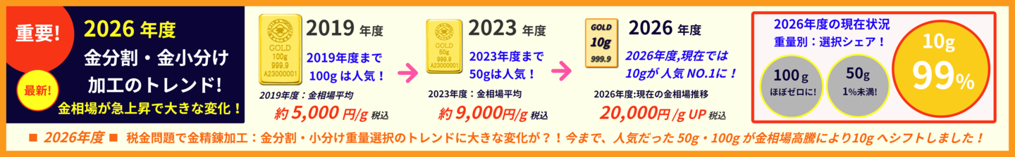*現在,★金相場急騰で10gインゴット金分割・金小分けに集中★のため工場が大変混みあっており,納期が掛ること,ご了承ください!