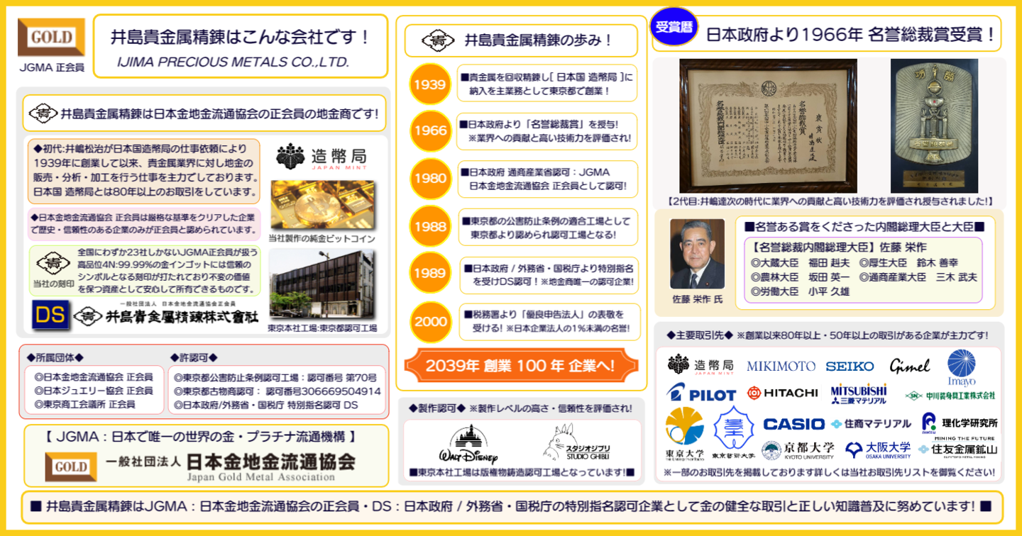 ■■ 井島貴金属精錬株式会社は JGMA:日本金地金流通協会 正会員の貴金属 地金商であり貴金属 素材加工企業
