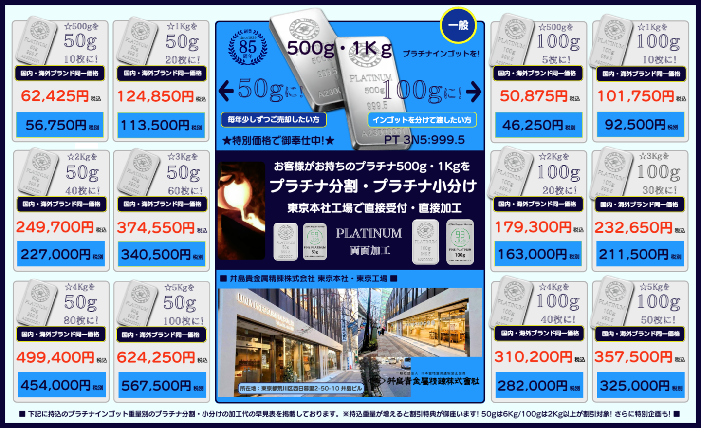 ★貴金属 地金商の井島貴金属精錬株式会社の東京工場で直接受付加工するからこそ加工代金に関して[ 公正で適正な価格 ]を実現できています!★