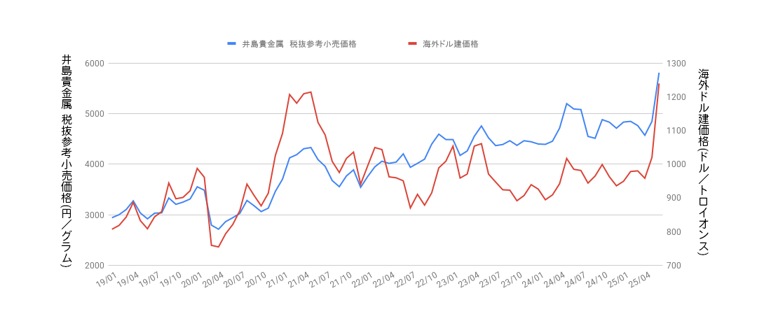 井島貴金属 税抜参考小売価格 (円/グラム) |