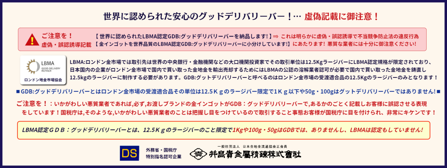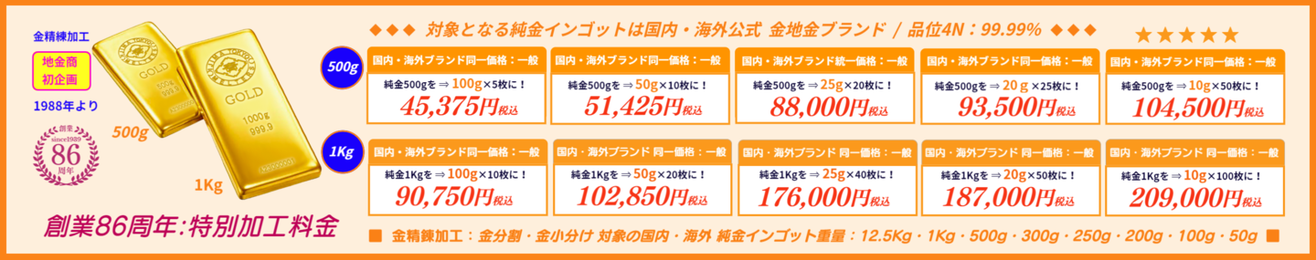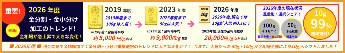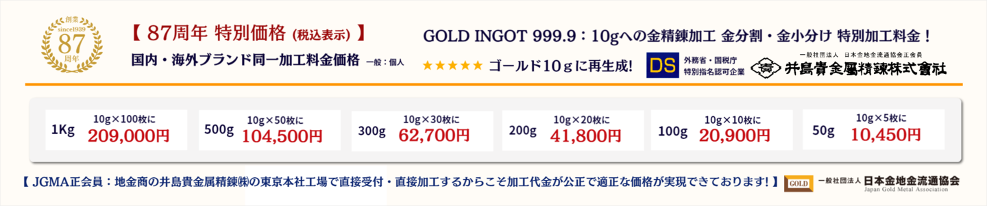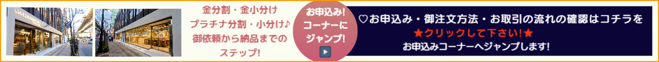 *現在,★金相場急騰で10gインゴット金分割・金小分けに集中★のため工場が大変混みあっており,納期が掛ること,ご了承ください!