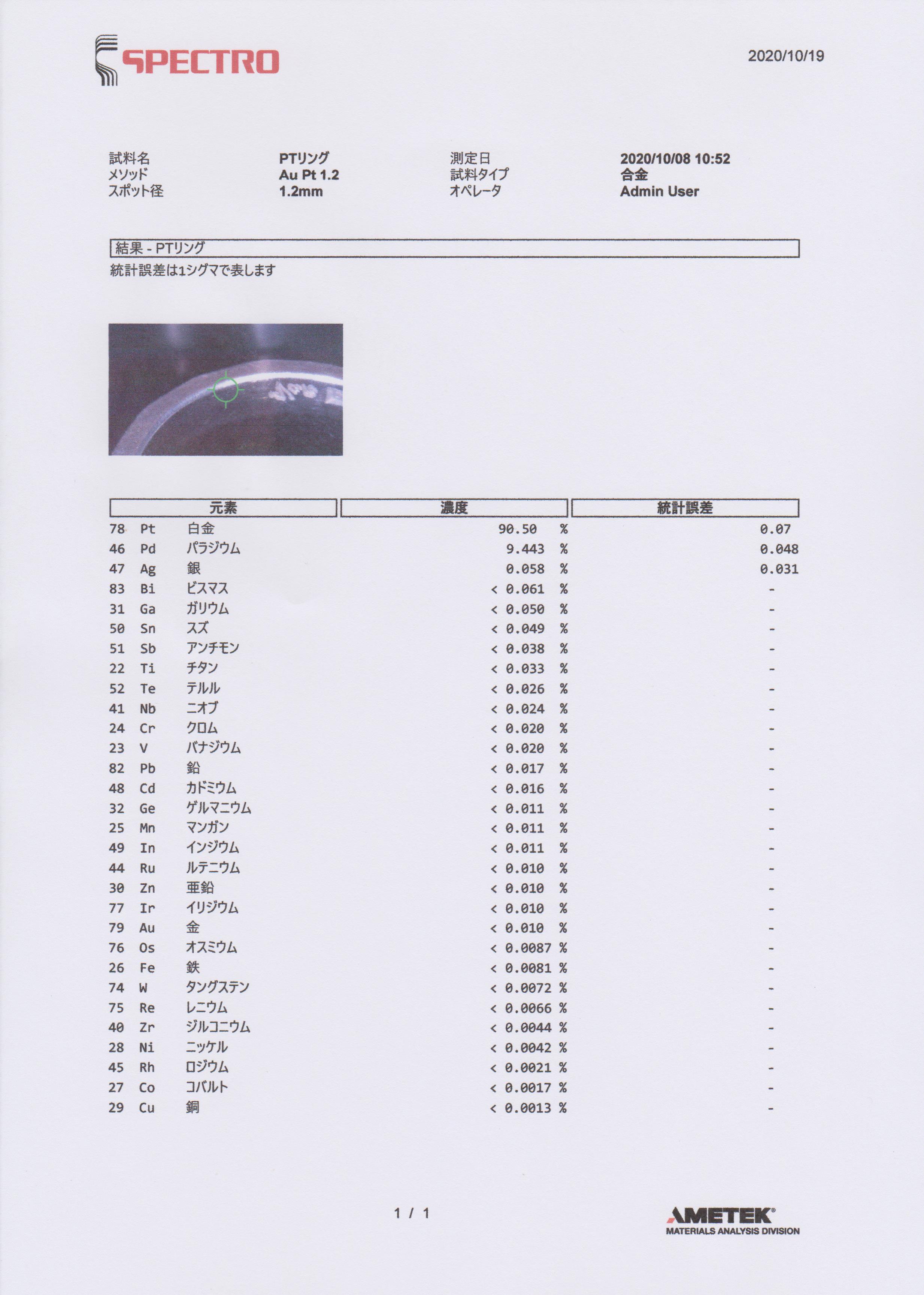 [ 貴金属合金に使用されうる31元素全て検査測定]