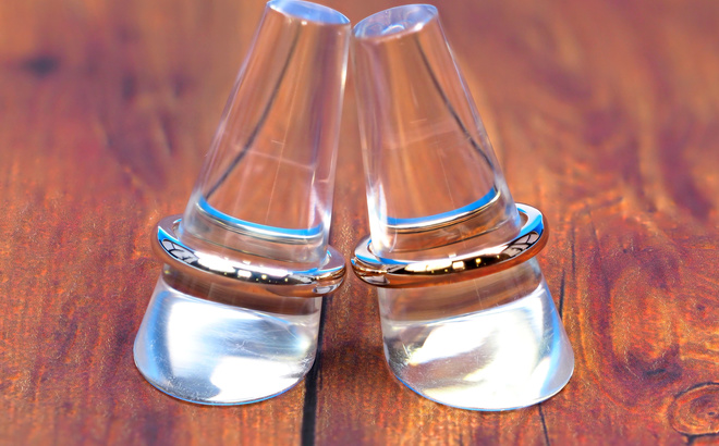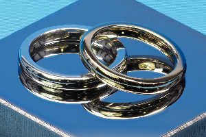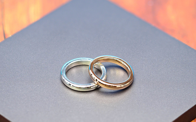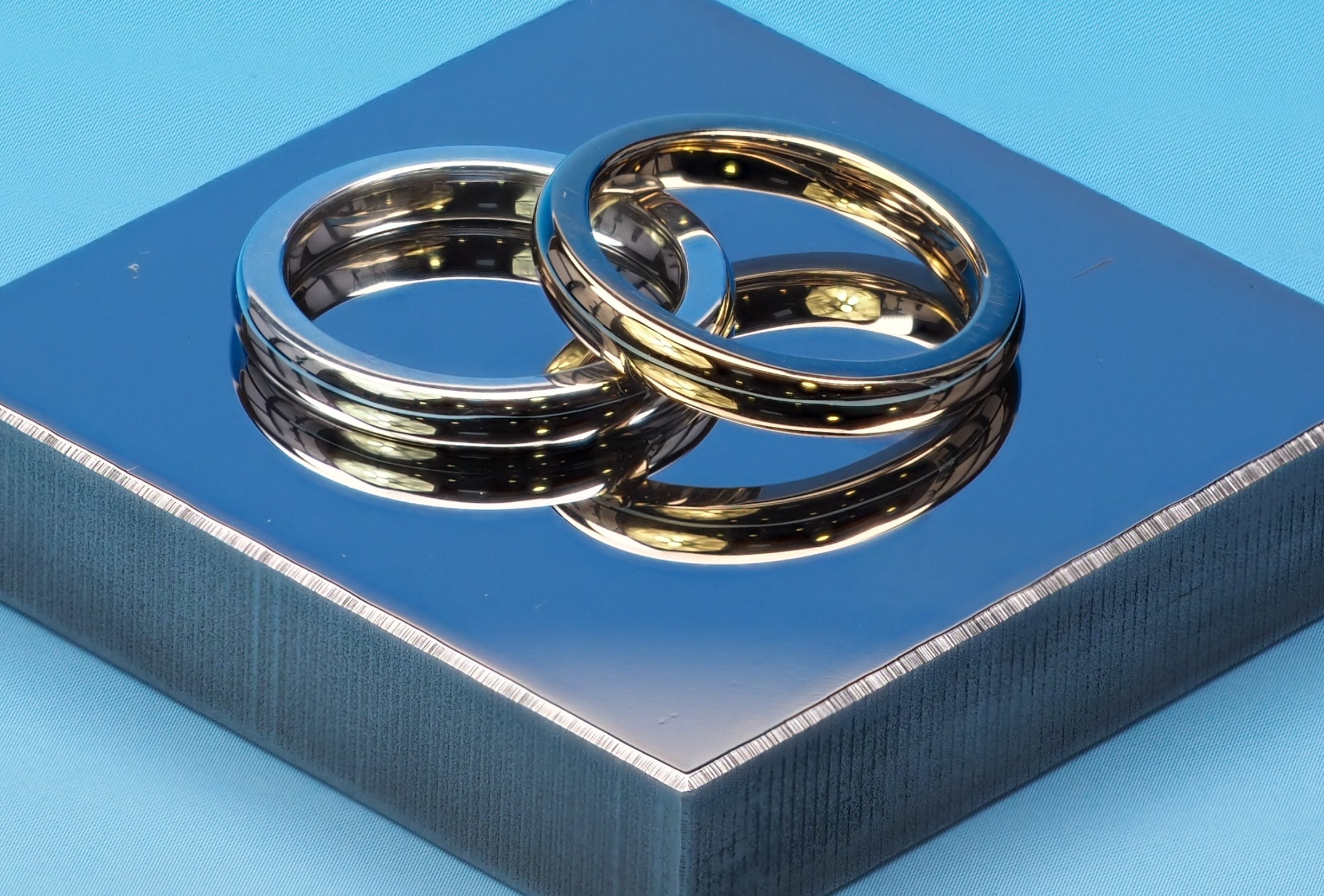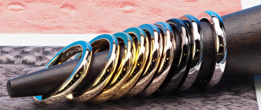 <左側>めっき加工をしていないリング <右側>各種めっき加工を施したリング